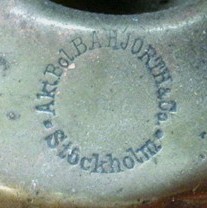 It is thought that the very earliest Lindqvist / Svenson pressure stoves, before B A Hjorth's involvement in 1892, had no markings on them apart from that on the filler cap (and in some cases the pump cap) which was stamped F W Lindqvist Patent 10 . However, the Primus name left without the stylised stove between Pri and Mus, was seen on stoves from as early as 1892, probably when B A Hjorth acquired the marketing rights. This style of the name, imprinted on the stove's tank shoulder, was thought to have been in use until 1896, at which time it is assumed to have been replaced by the familiar Cooking Apparatus trade mark below left. In the case of blowlamps, it is probable that the soldering equipment logo lower left was introduced in 1896, and not at the outset of blowlamp production in what is believed to be 1895, as there are examples of paraffin blowlamps with just the wording "B A Hjorth & Co, Stockholm, Sweden" stamped into the underside of the tank, and with just the model name stamped onto the tank shoulder. Such early blowlamp examples rarely appear. Indeed, it may be almost impossible to identify the very earliest of the petrol models. See below for further discussion. The B A Hjorth catalogue of products dated 1898 illustrates both the Cooking Apparatus trade mark, and the Soldering Equipment trade mark. See extract (French version). Prior to 1911 no model numbers as such appear on blowlamps11 rather, model types were identified by the names Aetna, Effectiv, Nautilus, Ultraprimus, Petrolia, Tarantella and Vesuvius, which were all designed to run on paraffin. Whilst the Phoenix (a self-heating soldering iron) the Ideal, (for drying of foundry molds etc), (the) Swedish Lamp12, and Vulcan models were all designed to run on petrol. The range of blowlamp models initially produced is difficult to determine due mainly to the lack of trade literature prior to 1898 but would have included at least some of those models listed. See below and the extract from the B A Hjorth 1898 catalogue. It is thought that the Nautilus, Petrolia and Tarantella models (all paraffin) were not part of the original range, but that they appeared some time before 1911, although this cannot be established in the case of the Tarantella. The "Cooking Apparatus" trademark, and hence the name "Primus" first appeared on J V Svenson / B A Hjorth blowlamps in 1911, and was in addition to the "Soldering Equipment" trade mark. 1911 is also the year in which Primus model numbers and date coding started to appear on blowlamps. See below. Two sizes of the "Soldering Equipment" trade mark were used, with small detail differences. Both sizes of logo can be seen on examples of the Swedish Lamp (immediately below) so tank size appears not to have been relevant. The larger size is not so often seen, and was perhaps only used over a particular period, or on certain export models? Certainly, the smaller of the two marks appears to be that which is generally seen. |