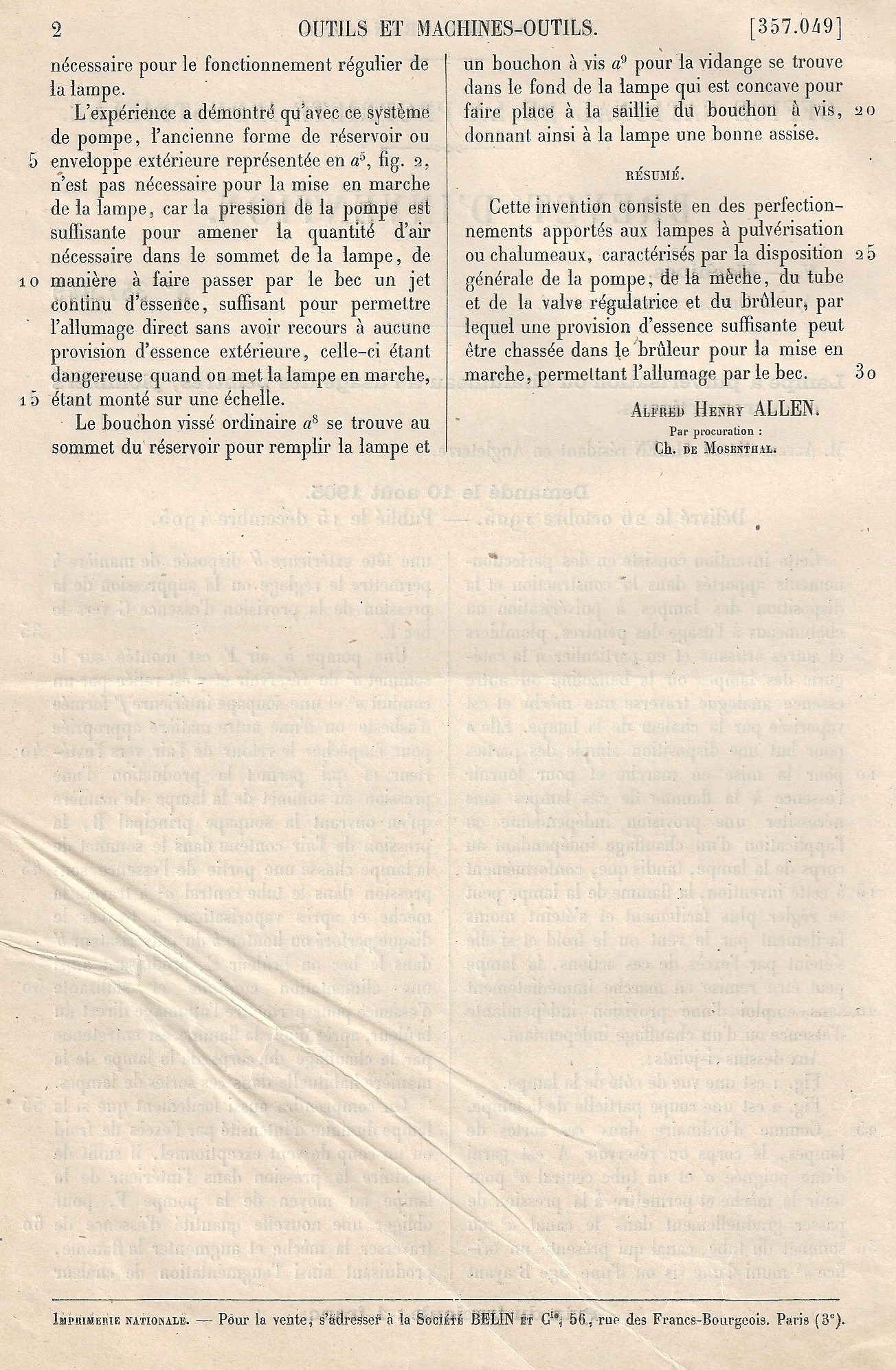 A H Allen~ French Patent No 357,049 (p2) (click on to enlarge) |